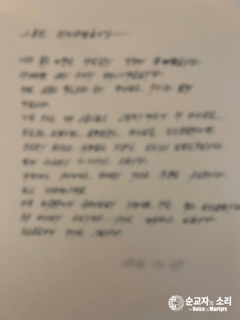 Hello. I didn’t know at first, but now I know that we are less free than animals that can’t go out or walk around. If I didn’t know the world, it would have been easier to endure, but now it’s hard to endure. All the hardships that lay upon us would leave nothing but anger and hatred. However, I talk about the Bible with my comrade every day. We’ve developed a relationship where we depend on each other for our lives. Even when we go back to Joseon, we have a plan to let our parents and brothers know the God we know. Recently, I learned about Christmas in detail, which I had never heard of it in Joseon, and I also learned anew that it was the day Jesus was born. I was very shocked that it was a universal holiday that only Joseon people don’t know. Wherever we go, we are with God, so we are never afraid. We believe that God will be with us also in the new year.