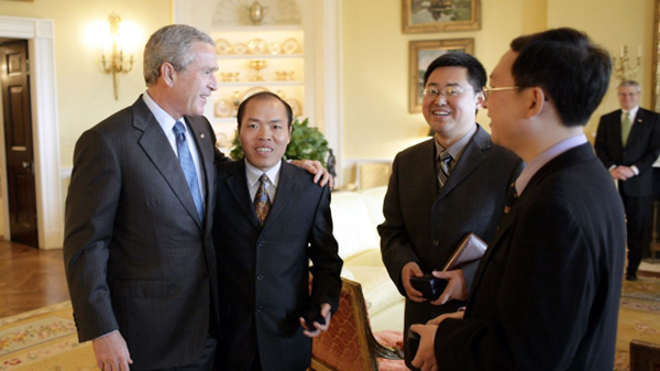 Dr. Li Baiguang (second from left) during one of three invitations to visit then-U.S. President George W. Bush.